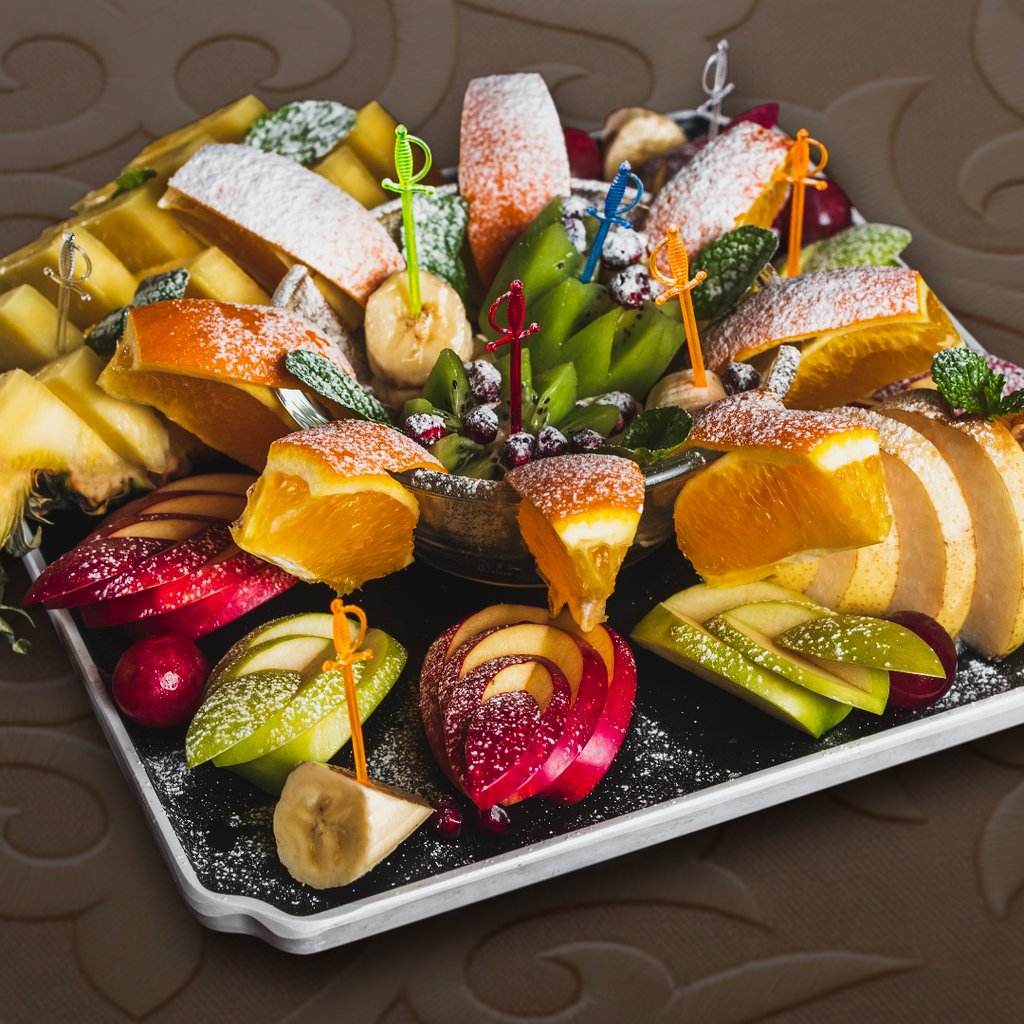 Свежие сезонные фрукты — лёгкая и освежающая закуска.